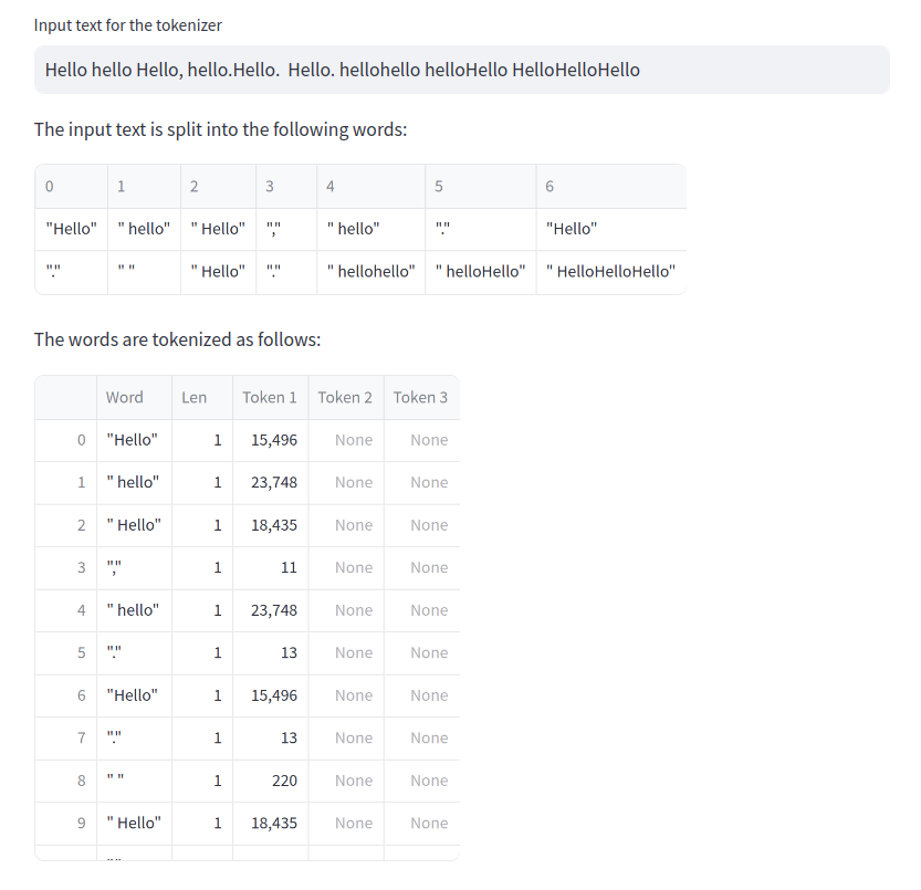 GPT-2 maintains a fixed dictionary of around 50k tokens. The model uses the Byte Pair Encoding tokenizer algorithm split any given input sentence into a token sequence. This token sequence is mapped to a sequence of integers that is consumed by the model.